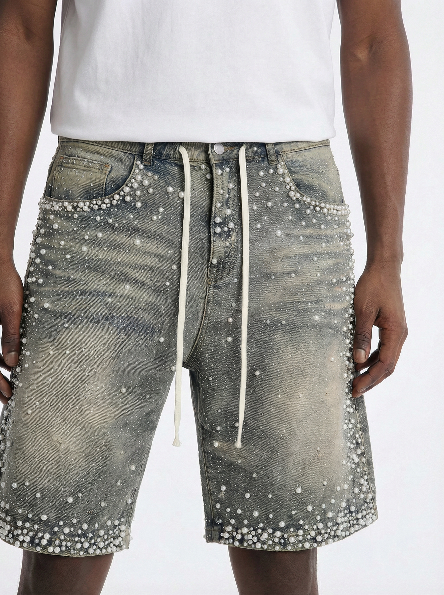 Premium denim with precision-set crystals that catch the light and elevate your entire look.
